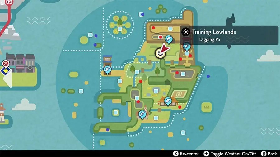 - Tower of Darkness – There are two nearby Dens to check. One is right by the spawn point, the other is down the stairs and in the grass below the area. Look down and if Digging Ma has spawned, you be able to see here standing by the Den.