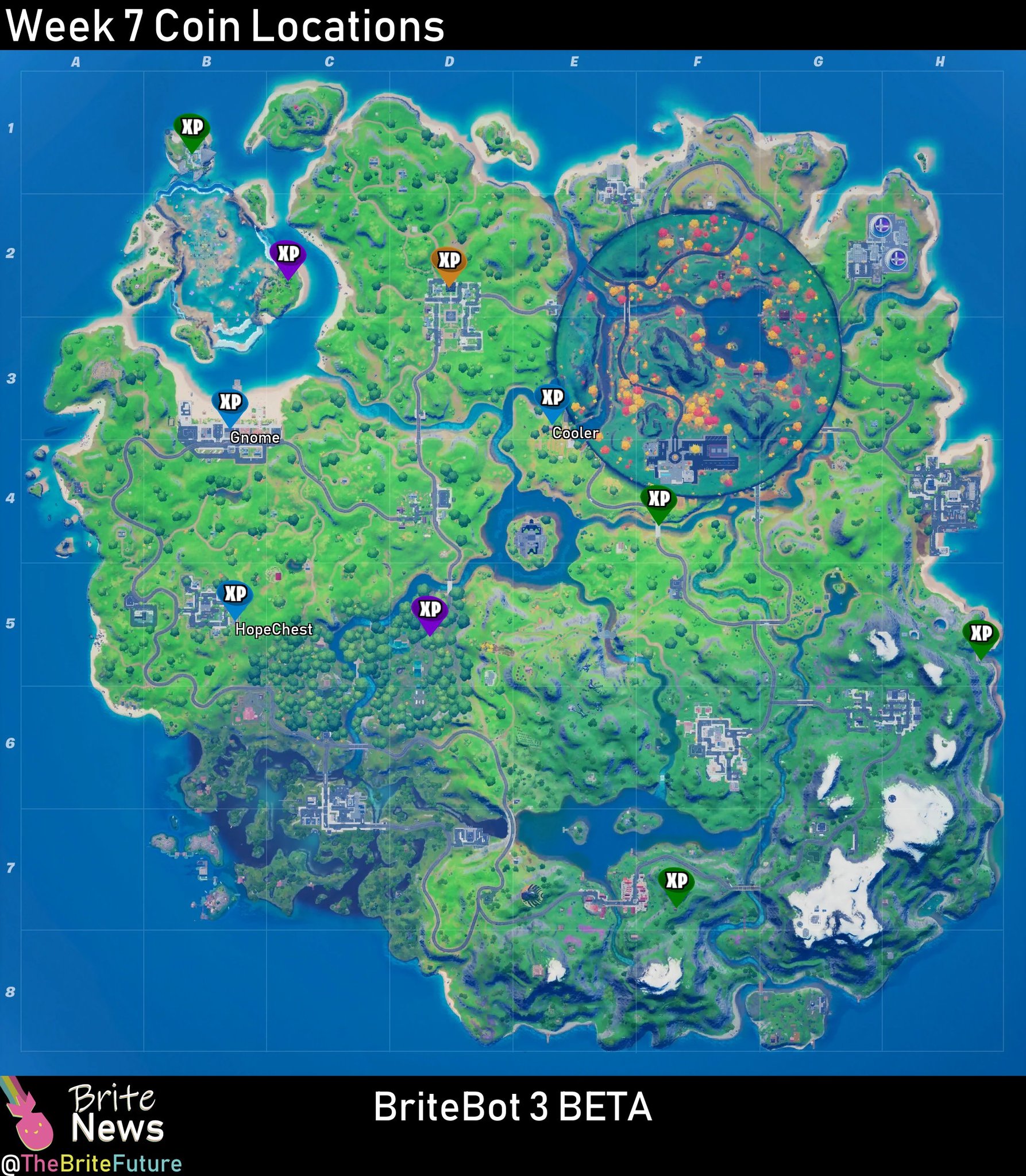 What are XP Coins you ask? These random spawns are located around the map in the game’s main mode, and give free XP to a player that finds them. Each one has a huge amount of tens of thousands of XP in it. That makes these XP Coins highly sought after by Fortnite players. Each week, the spawn locations will shift and make things much more complicated when it comes to hunting them.