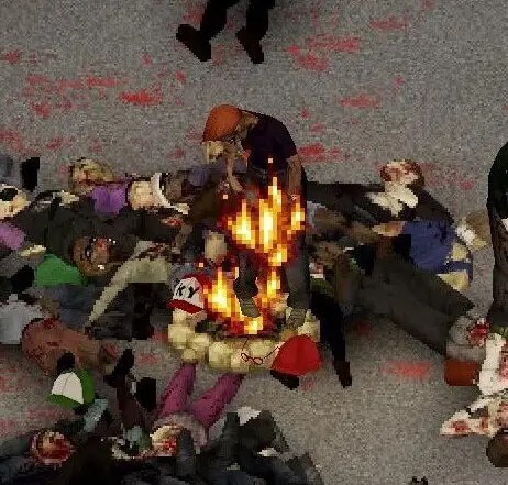Now, pile the corpses around in an open area and set the campfire up in the middle. Once you have ignited the fire, the nearest corpses should catch first. Now just wait for the fire to spread. Always be sure to do this in an area away from flammable structures, it’s not a good thing to burn your camp down. Also, be sure to loot bodies before burning any of them. Zombie loot can be pretty useful.