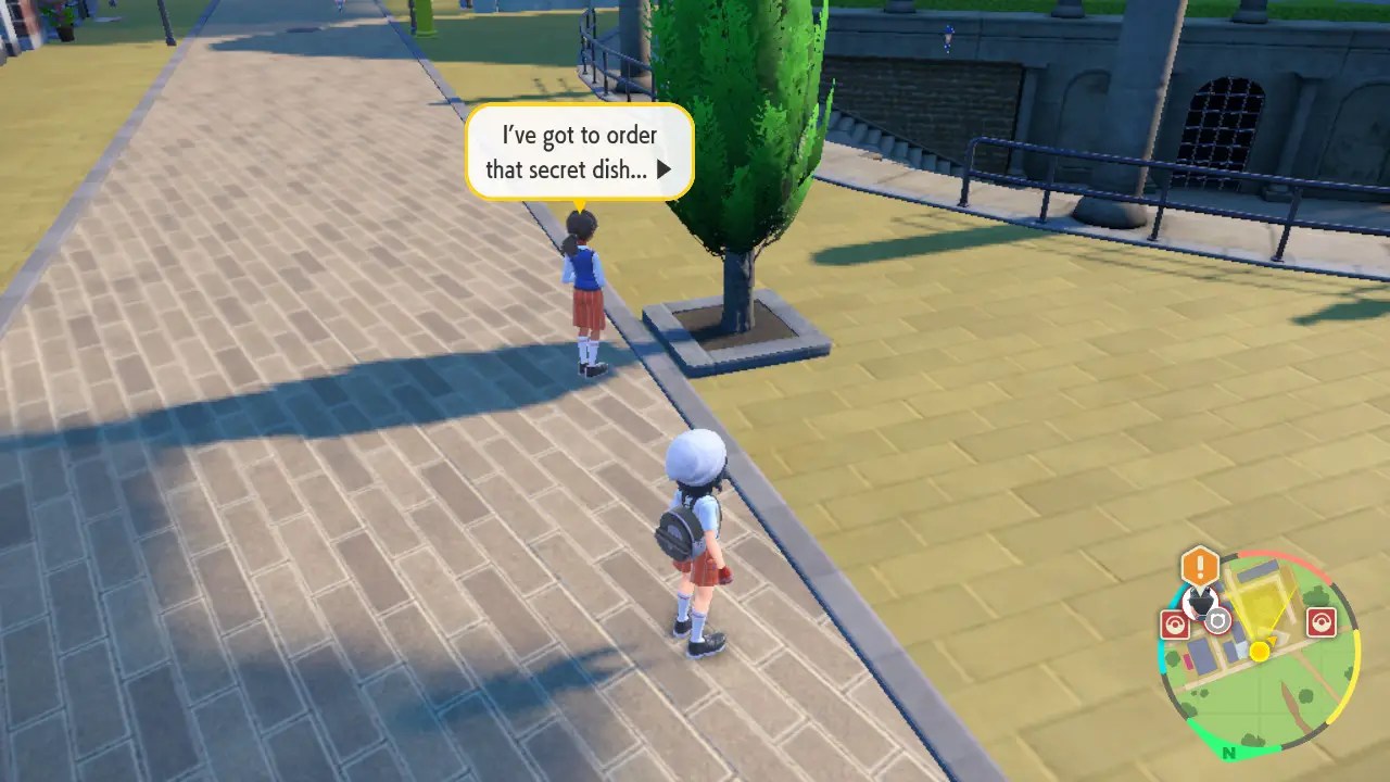 We still need one more clue, and it’s off to the actual restaurant you need to order from for this one. Treasure Eatery is on the east side of town, right next to the Pokémon Center. Head inside, and talk to the Office Worker sitting at the bar, who tells you what seasoning you need to ask for — Lemon.